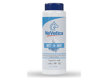 NéVetica’s Wet-A-Way absorbs fresh liquid stains from flooring with a unique, fast-acting powder. No need to pull out old mops or blot with towels and rags. Simply pour Wet-A-Way on your mess and in 60 seconds or less, it’ll turn the liquid to solid. Easy to dispose of and safe to be used around children and pets when used as directed.